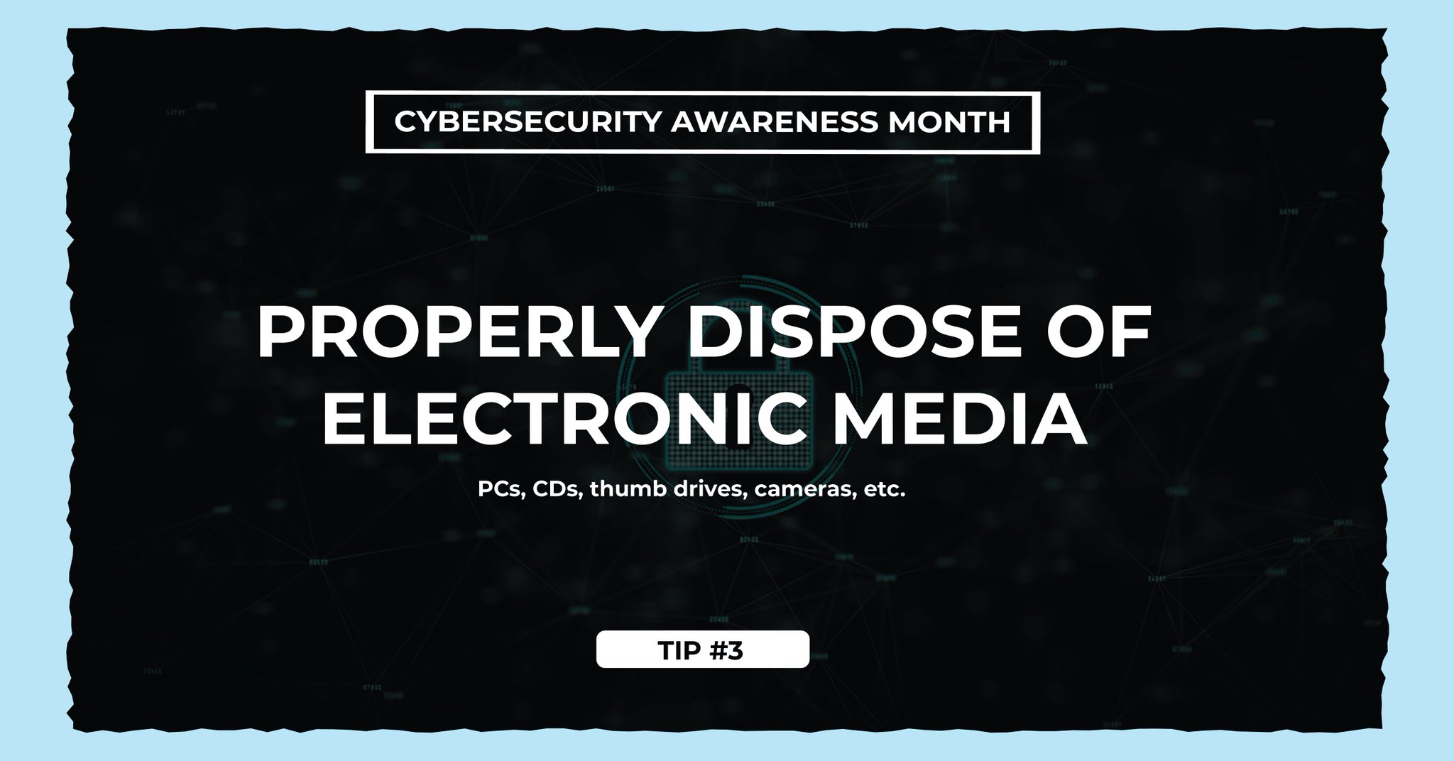 Cybersecurity Awareness Month tip three: properly dispose of your electronic media! Items which are carelessly tossed away may contain data that can be used against your company. https://t.co/Wn0PoDvu2b