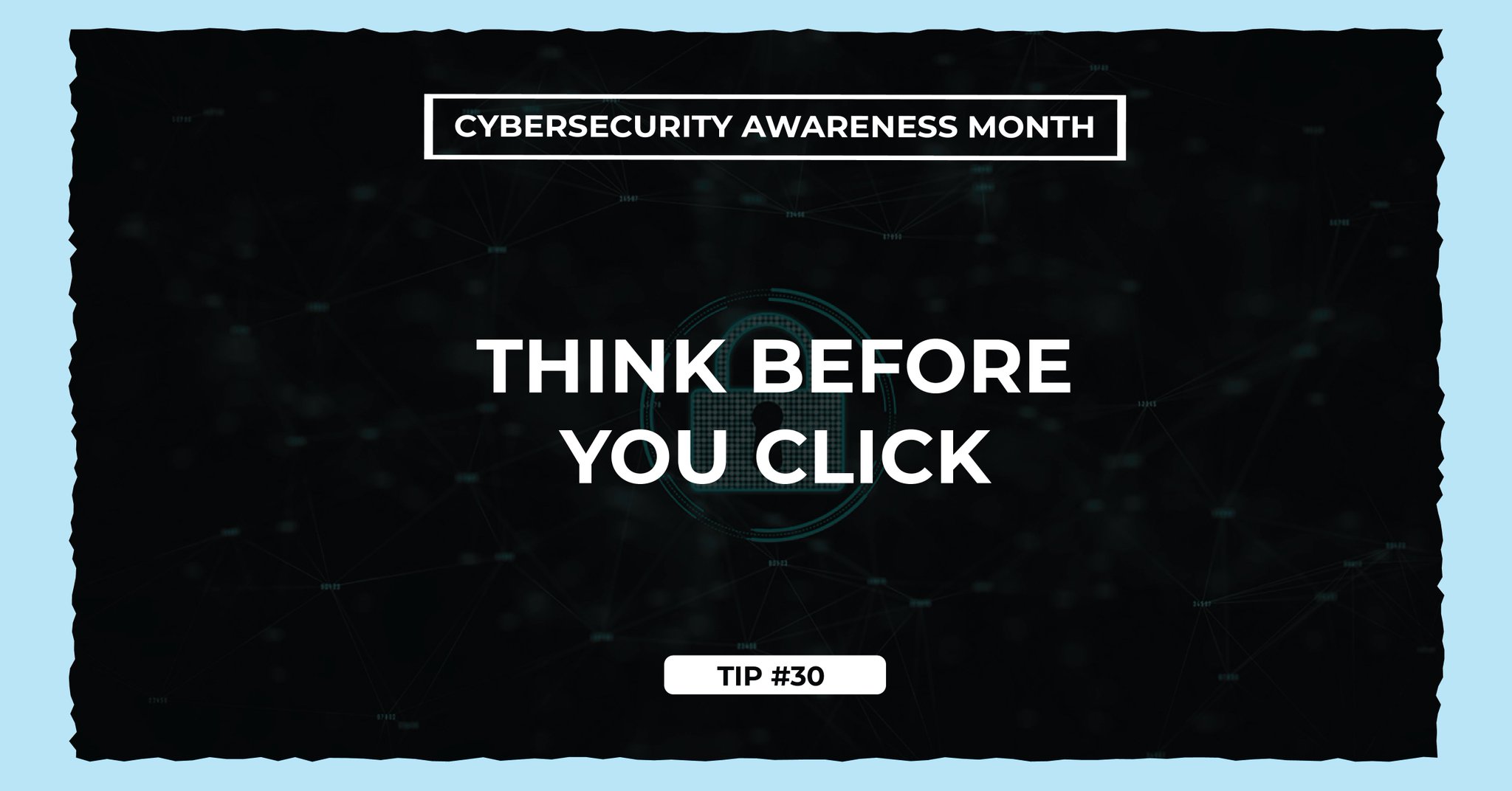 Cybersecurity Awareness Month tip number 30: think before you click! https://t.co/HELtAvd077