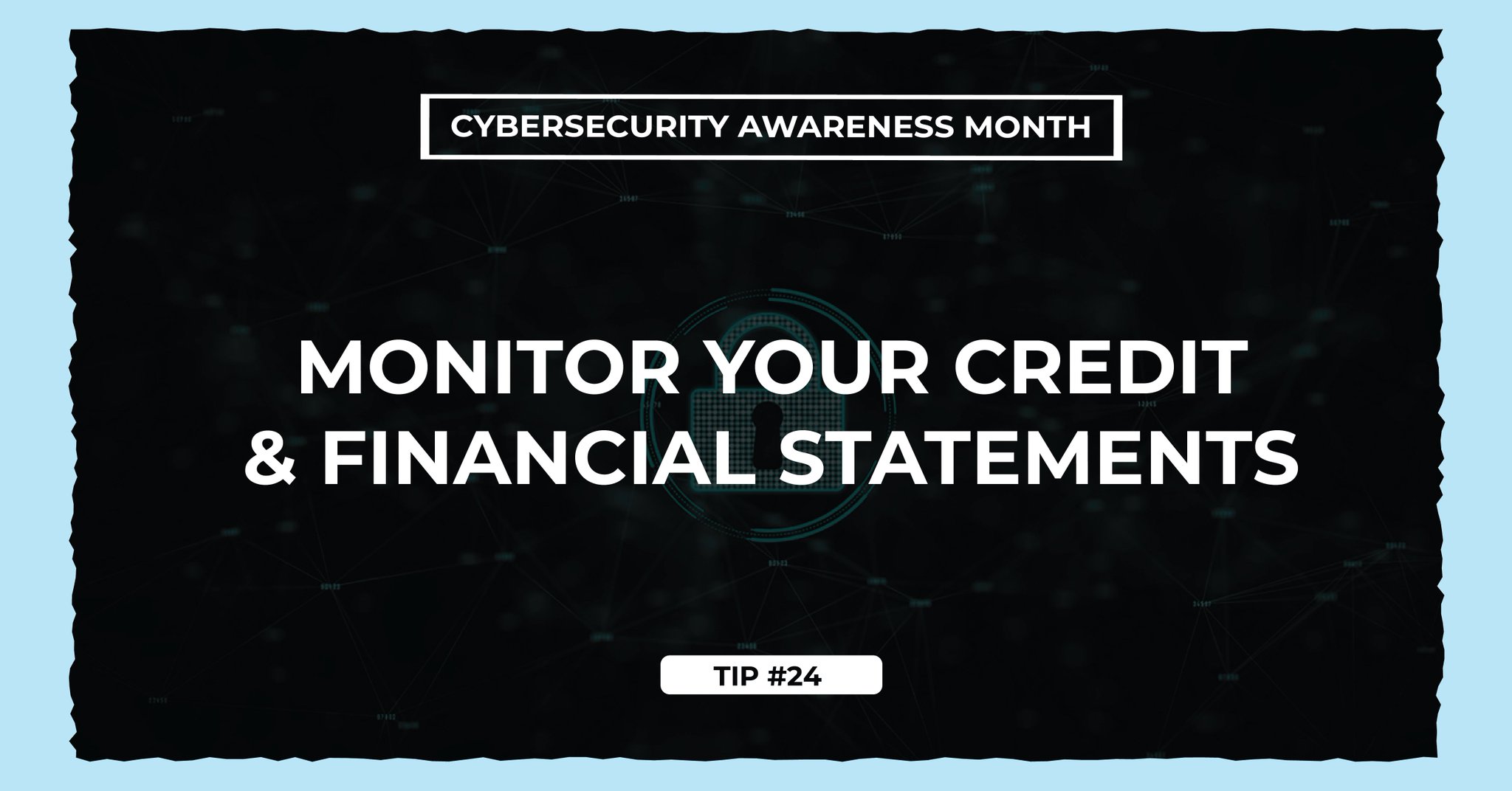 Next tip for Cybersecurity Awareness month: monitor your credit and financial statements. Detecting any anomalies quickly and responding decisively can stop problems before they get out of hand. https://t.co/uuz3LoScuh