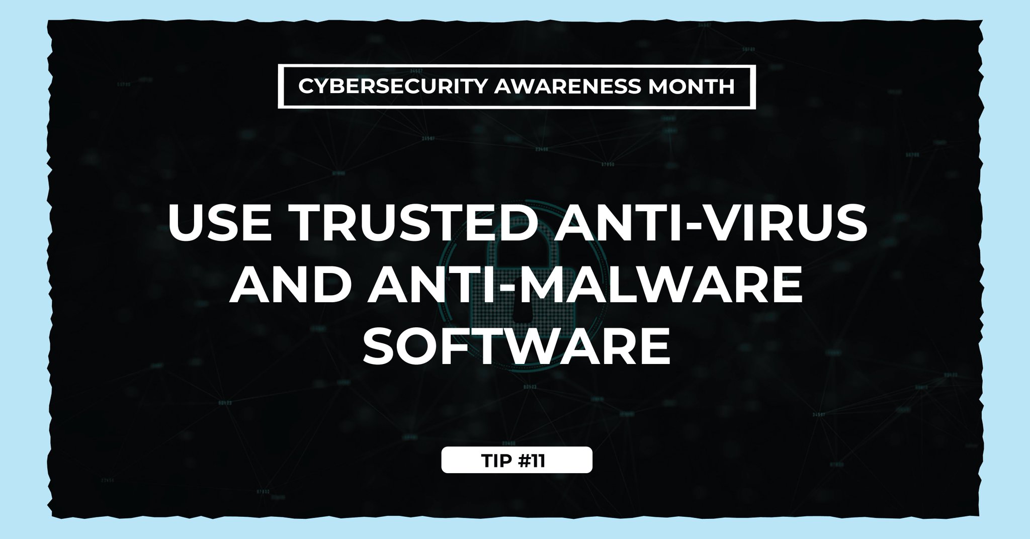 The eleventh tip for Cybersecurity Awareness Month: Use trusted anti-virus and anti-malware software. It's as simple, easy, and effective as using soap when you wash your hands- a great way to screen out a lot of potential danger and keep your data from being at risk. https://t.co/5jfdC1Vwpa