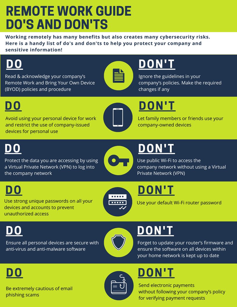 While many people continue to work from home across the globe, it's important to remember that cybersecurity matters just as much in your home as it does in the workplace. Here are some important things to keep in mind while you're working remotely. https://t.co/BjB29rt2jC