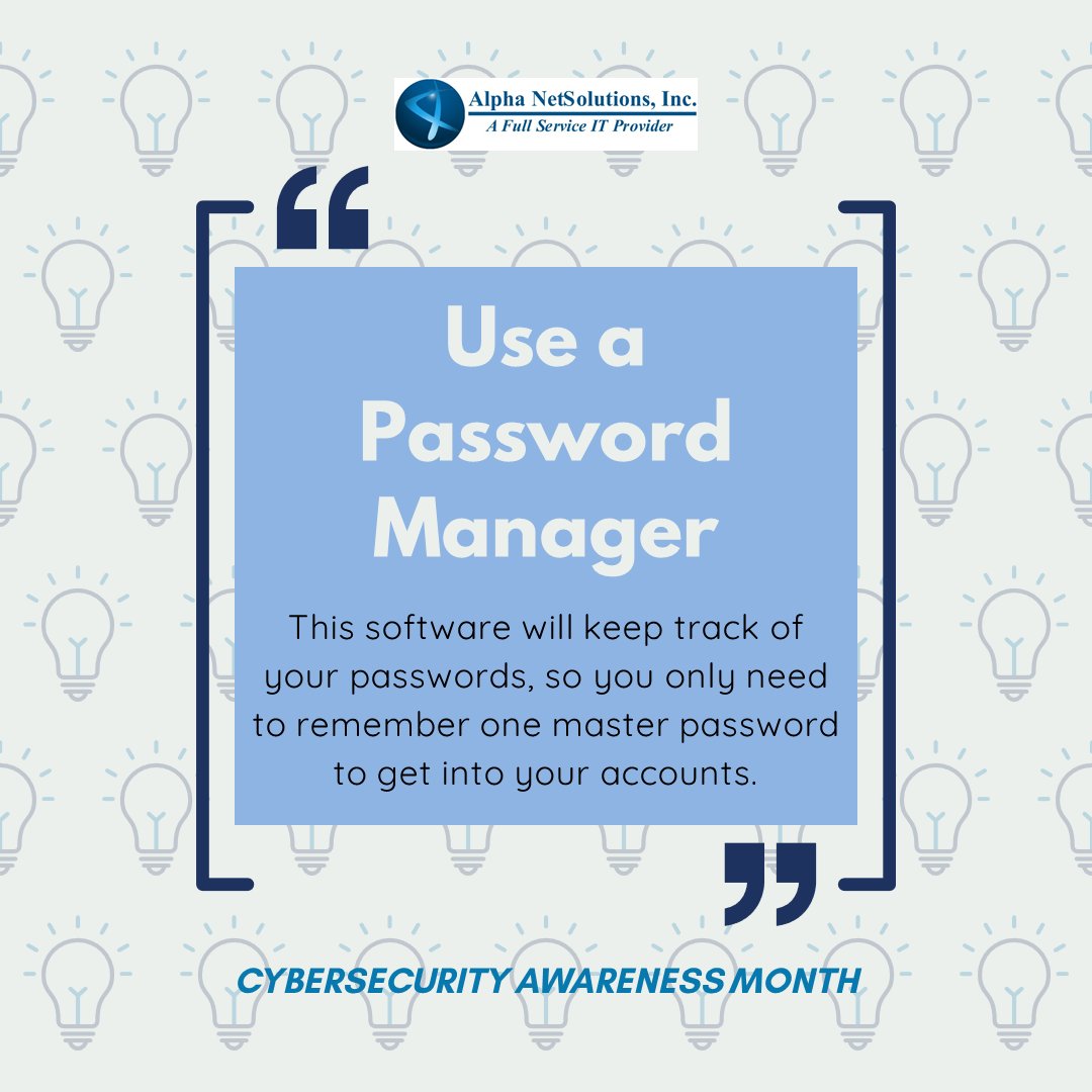 Cybersecurity Awareness Month tip number 5: Use a password manager! If you have a very large number of unique, secure passwords for various different sites, you might start to have trouble keeping track of them. Password manager software can help with this! https://t.co/3nCE6AEQDn