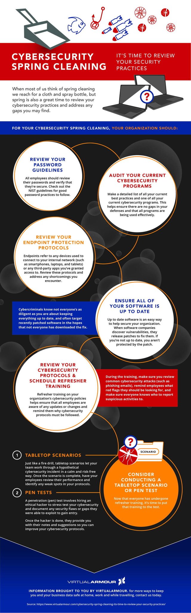 Your company might need a little cybersecurity spring cleaning! Here are some tips, courtesy of Virtualarmor.